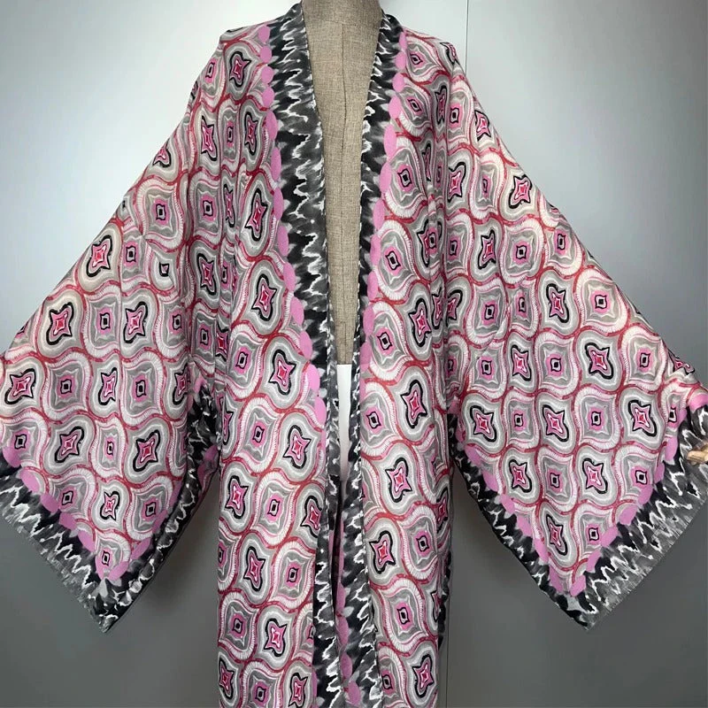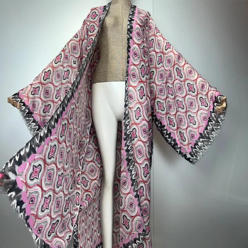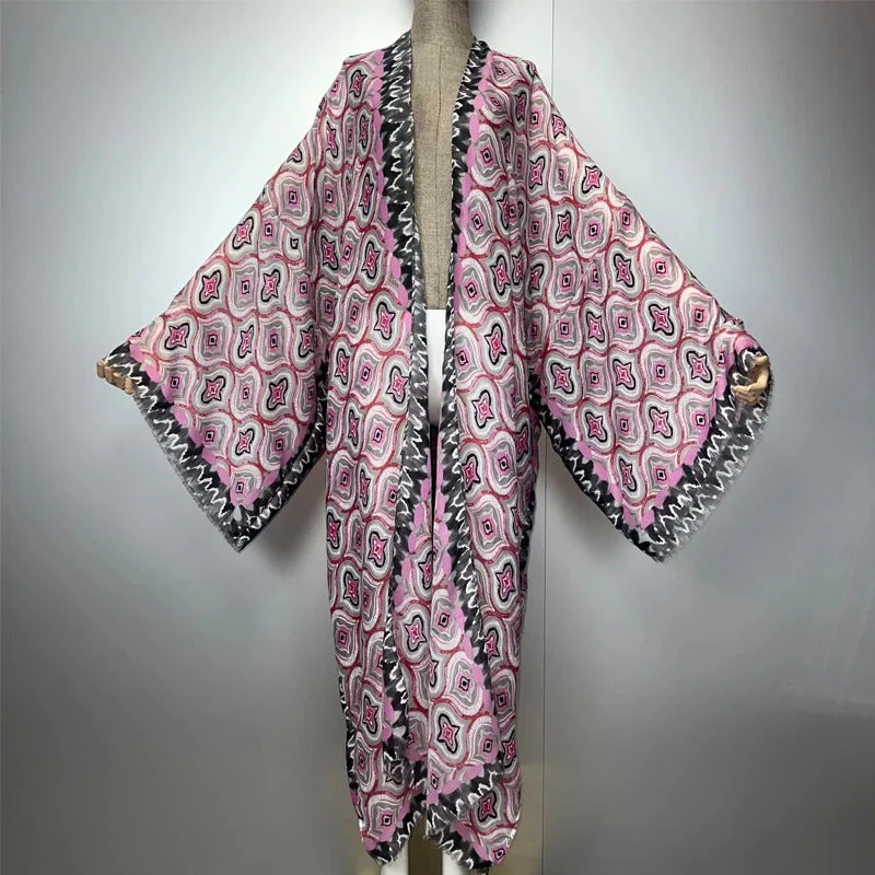 Ce modèle se distingue par ses petits détails bien pensés : des styles légers aux extrémités, des imprimés délicats et une coupe ouverte fluide qui souligne la silhouette sans la contraindre. Un choix idéal pour mêler confort, élégance et originalité.