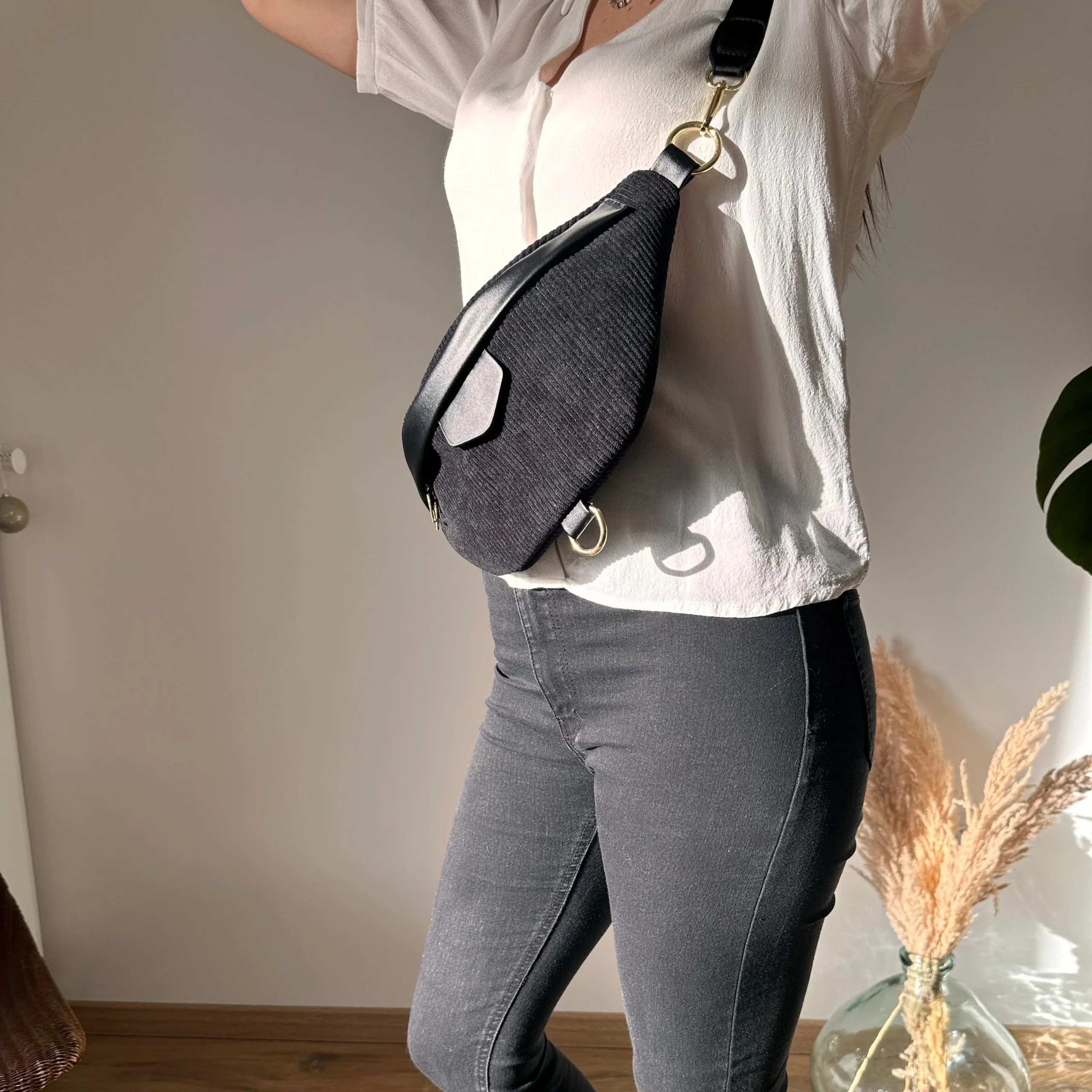Cette banane en velours côtelé avec finitions en simili cuir allie style et fonctionnalité. Son design structuré offre plusieurs compartiments pour organiser vos essentiels, tandis que sa bandoulière ajustable permet un porté confortable en bandoulière ou à la taille.