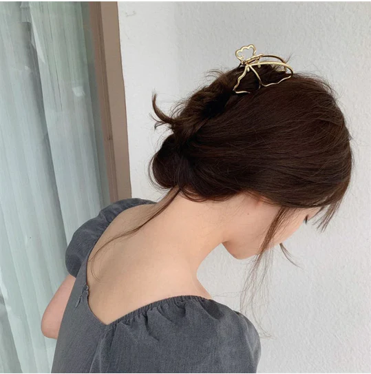 Un peu de poésie dans vos cheveux grâce à cette Barrette Forme Papillon. Ce bel insecte doré ou argenté maintiendra vos cheveux élégamment.