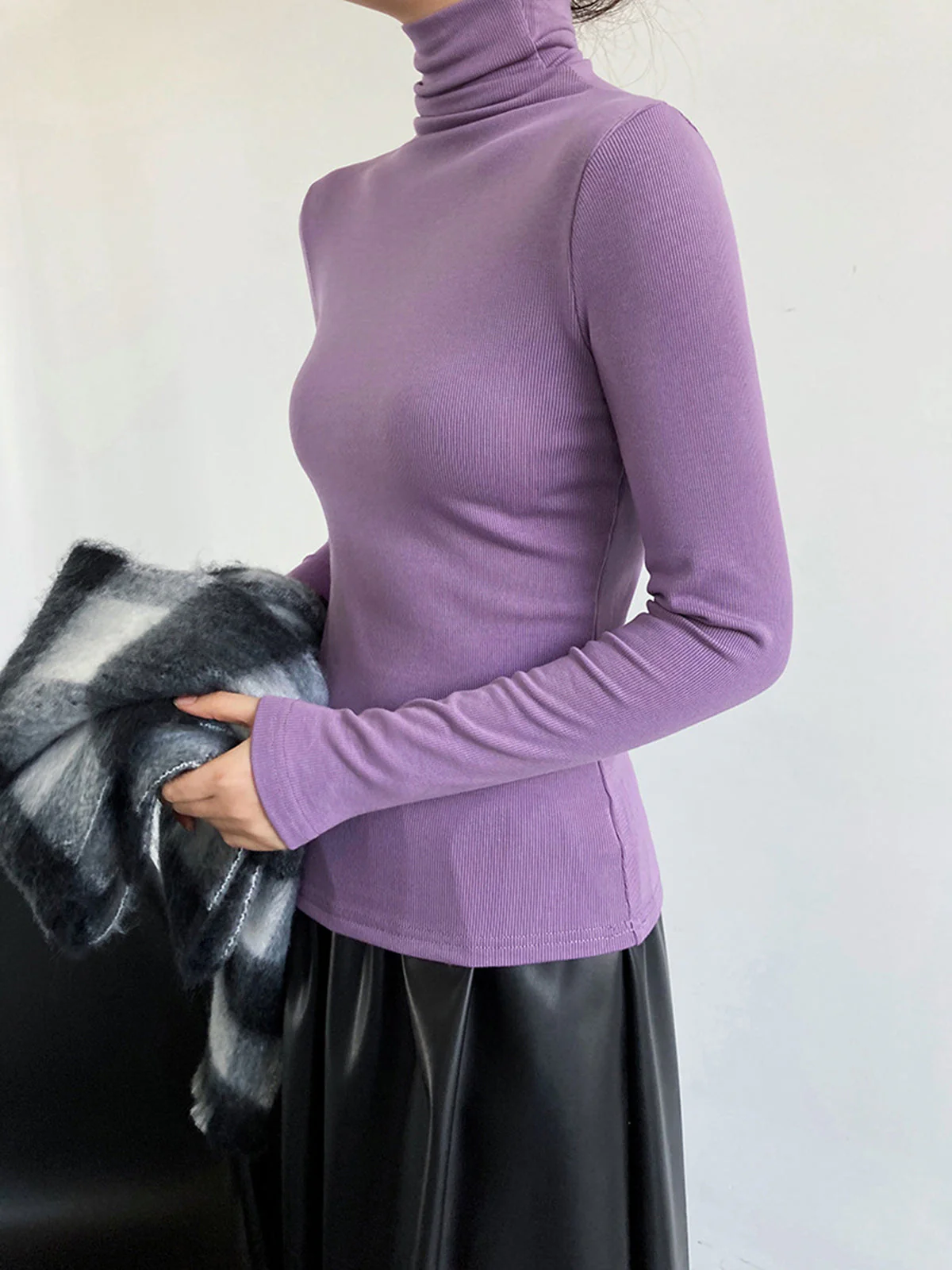 – Collar: Fitted turtleneck for cozy, elegant style
