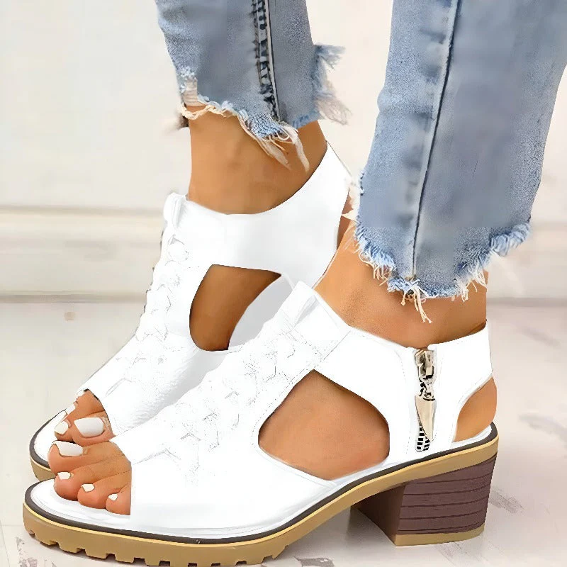 These block-heeled sandals feature a robust design with lace-up details and modern cut-outs.