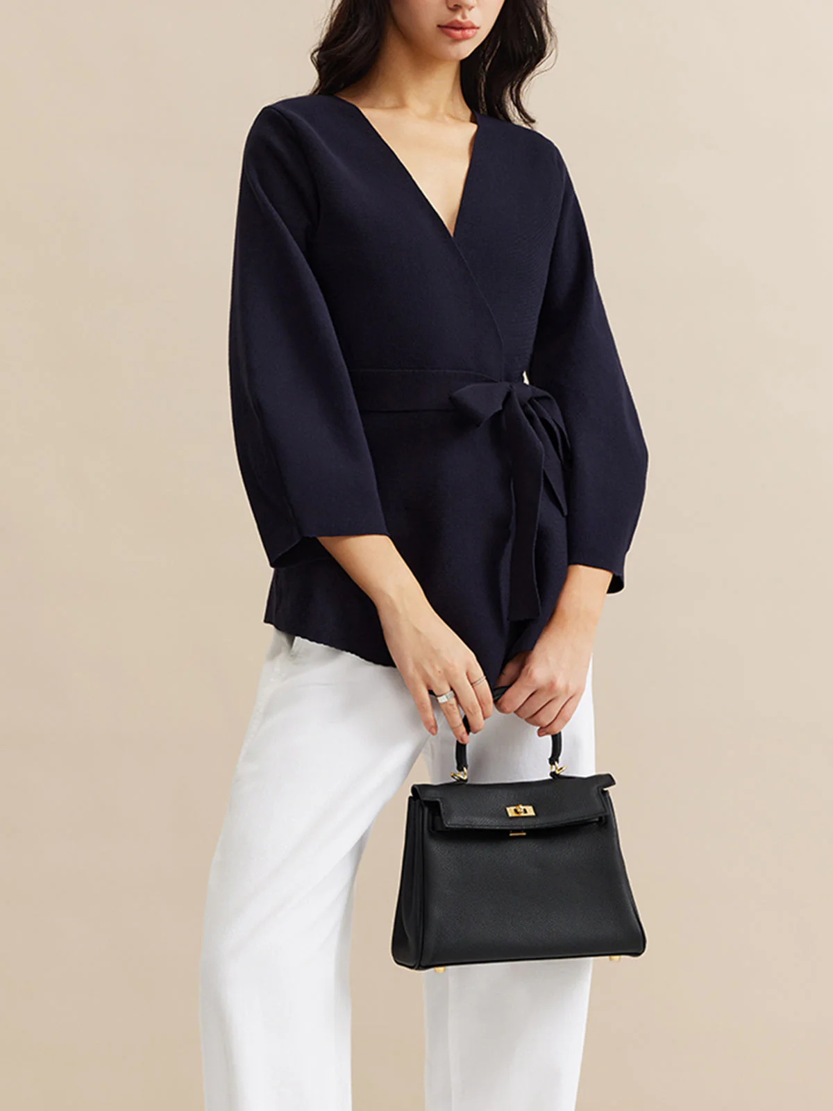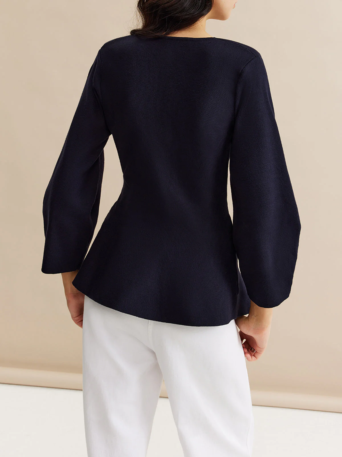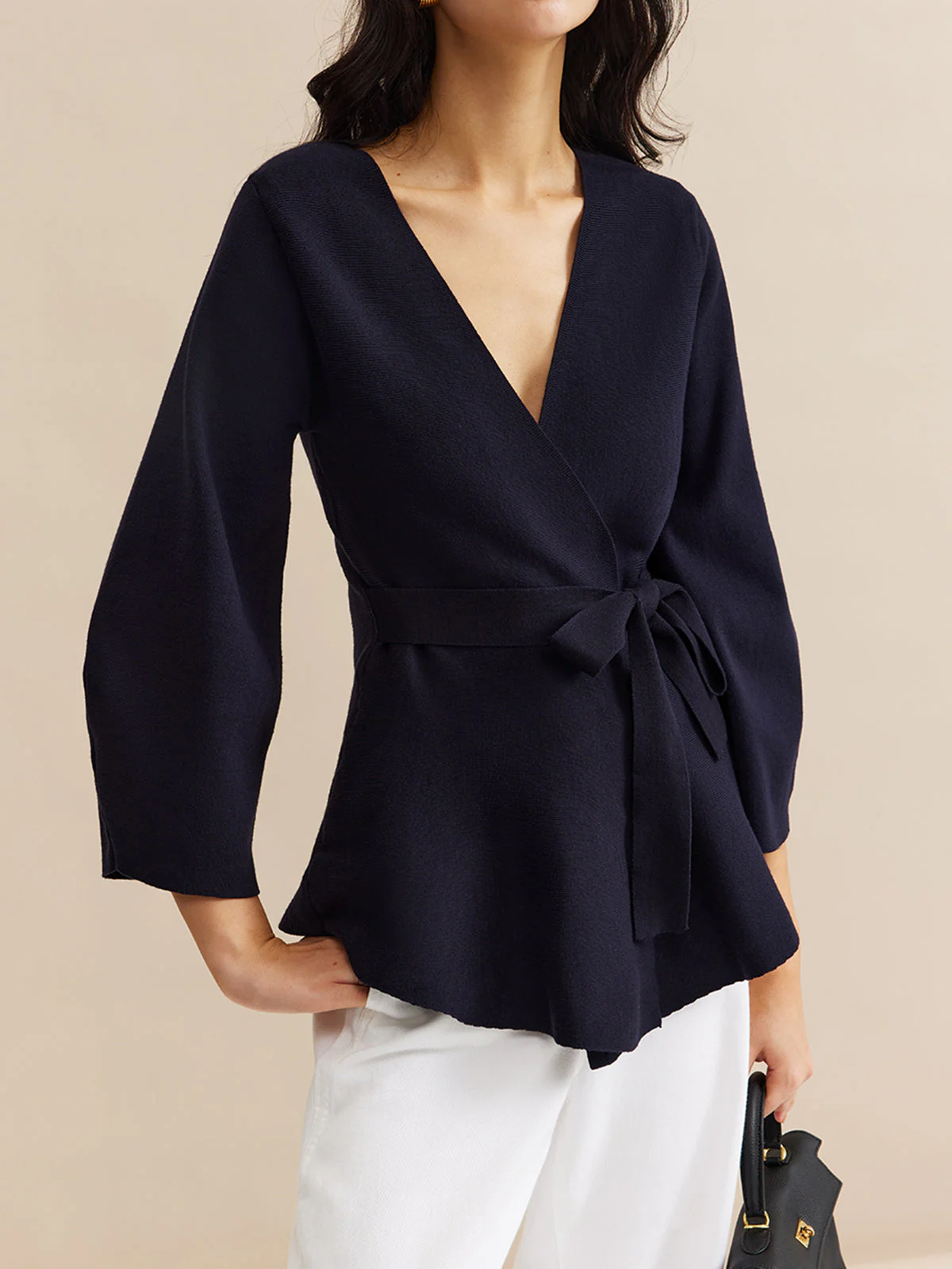 Blouse Portefeuille Manches Bouffantes | Bleu Marine | Élégance Structurée