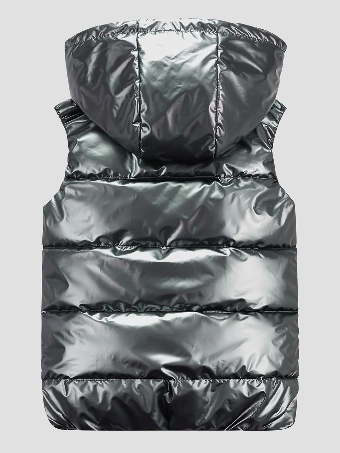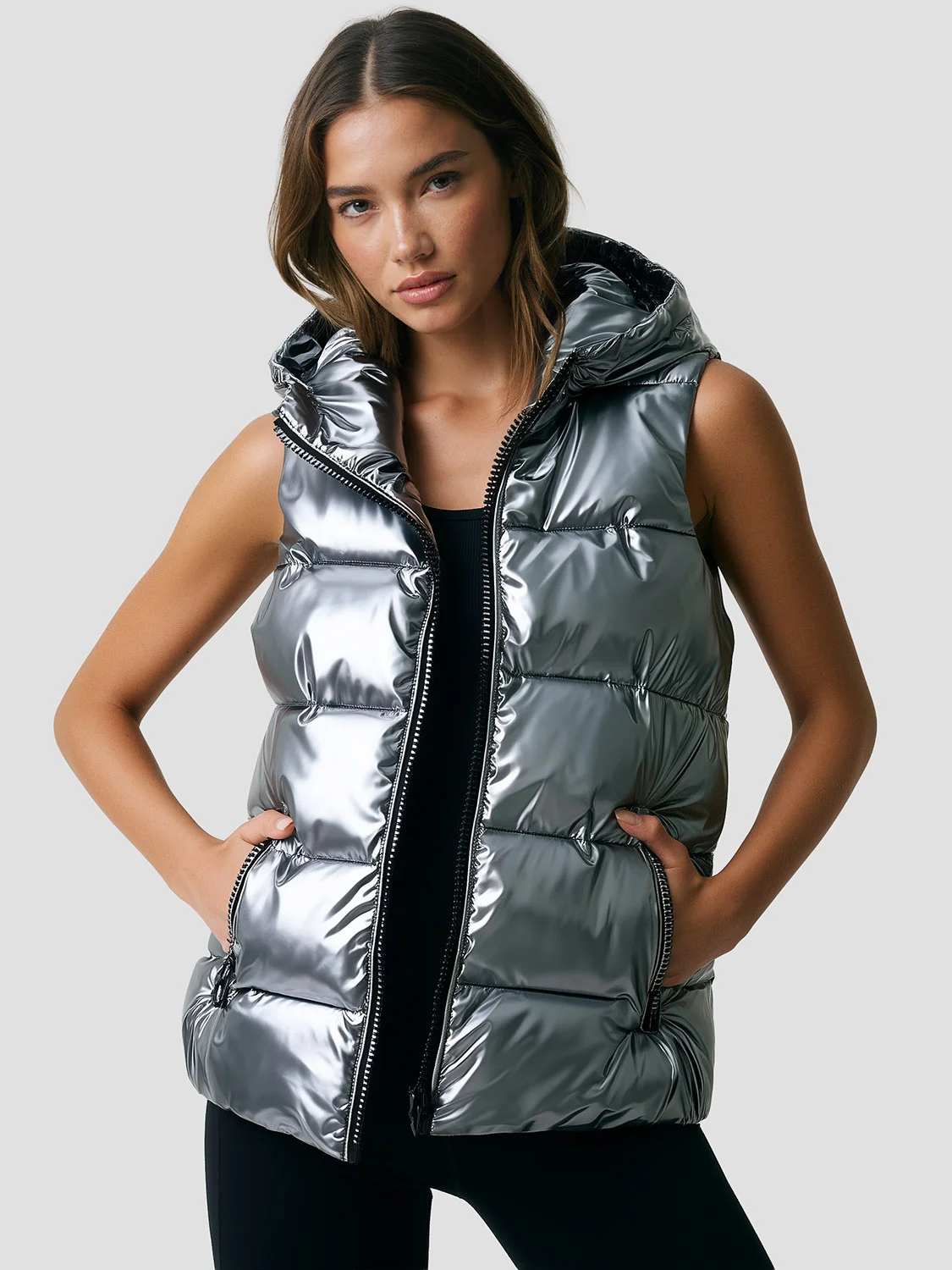 Portez ce gilet avec une robe-chemise pour un look féminin ou combinez-le avec des jeans et des bottes pour un style plus décontracté. Sa coupe ajustée et ses finitions brillantes en font une pièce idéale pour ajouter une touche d’éclat à vos tenues d’hiver.