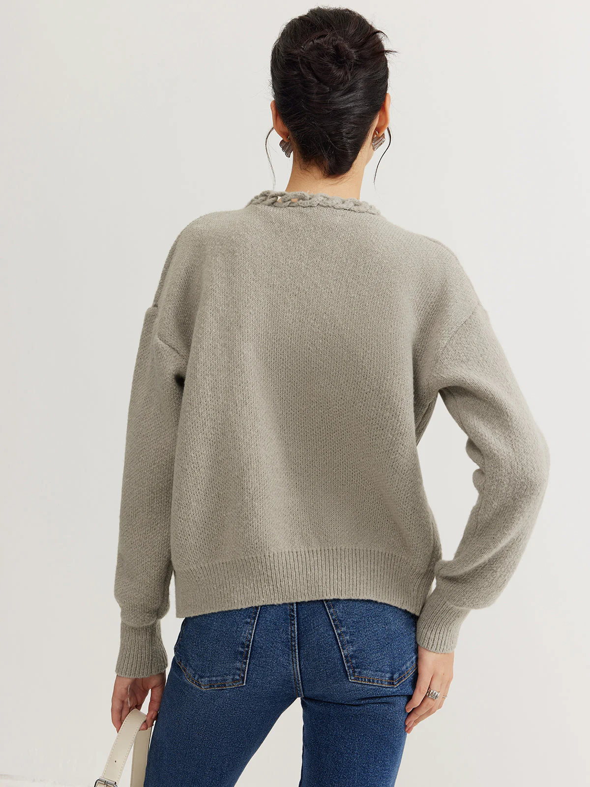 Ce cardigan en maille texturée offre une chaleur confortable tout en mettant en valeur une finition originale grâce à sa bordure tressée.