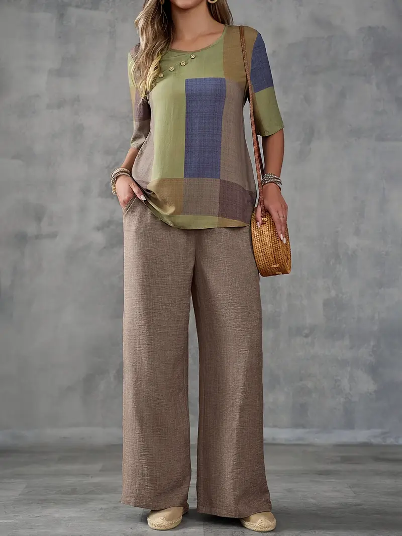 Casual Set Checkered Top and Wide Leg Pants | Chic and Comfortable