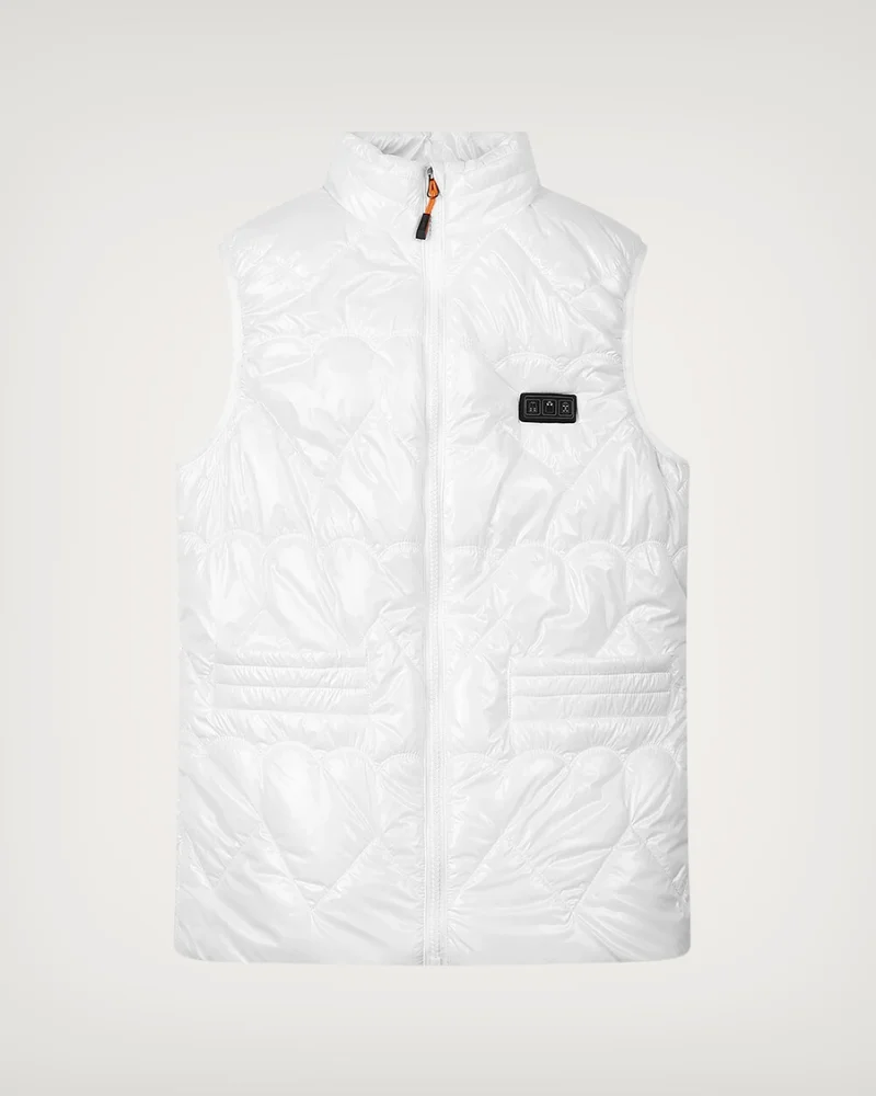 Doudoune de chauffage blanche disposant d’une batterie rechargeable avec une efficacité de plusieurs heures. Son système d’optimisation électrique permet de lutter contre la dissipation rapide de la chaleur surtout quand il est porté sous un manteau.