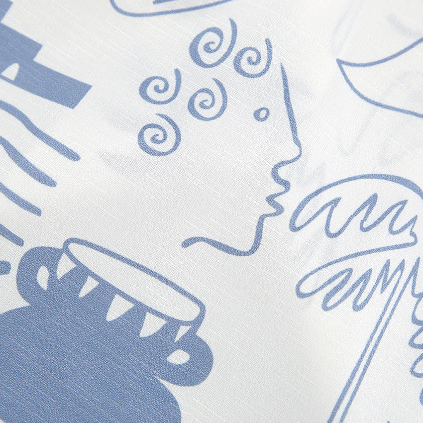 • Motif abstrait : Design bleu clair audacieux sur fond blanc pour une allure estivale