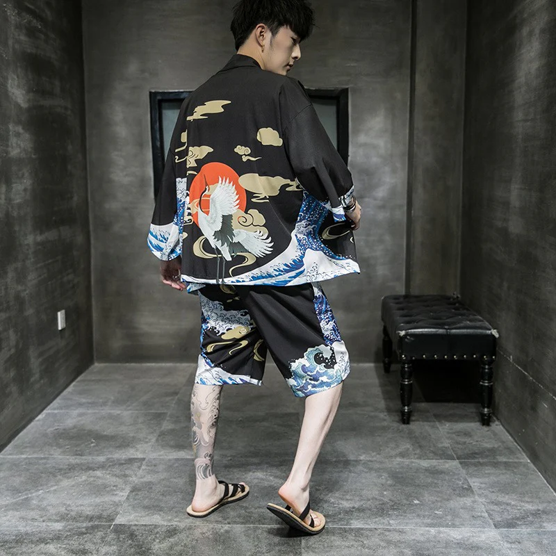 Chemise Kimono Homme Rouge Noir