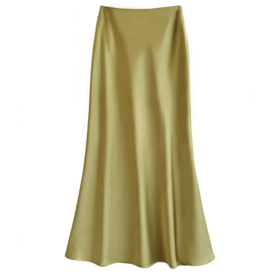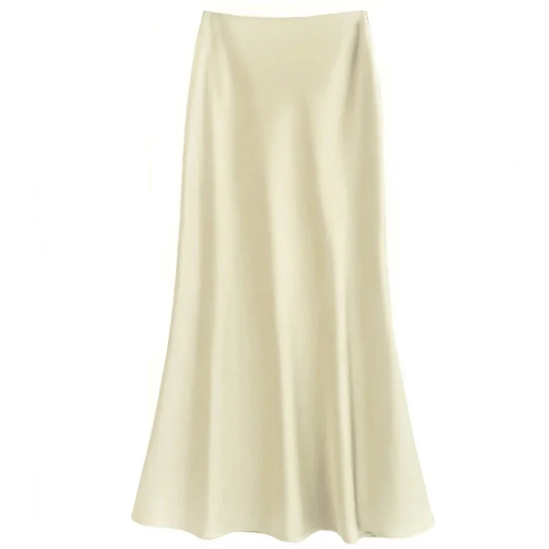 Cette élégante jupe en satin offre une silhouette lisse et raffinée avec un éclat subtil qui capte la lumière de manière délicate. Parfaite pour des occasions spéciales ou pour sublimer votre look quotidien avec une touche sophistiquée.