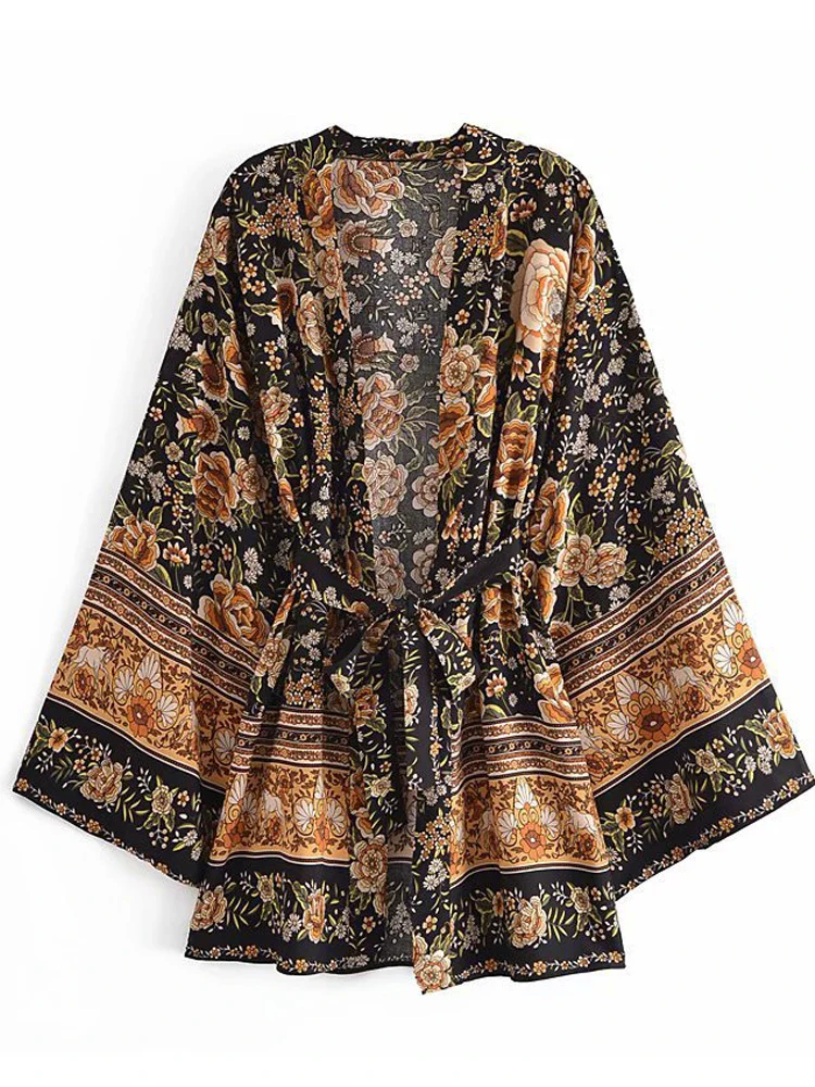 - Kimono court à imprimé floral pour une touche chic et estivale