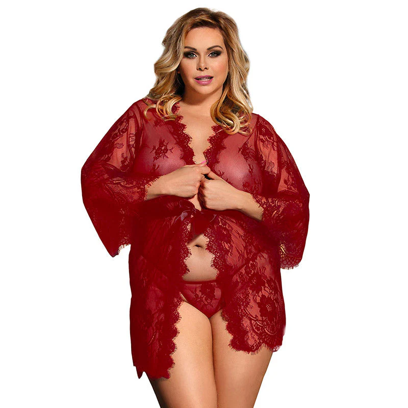 Découvrez un kimono en dentelle sexy et élégant au colori rouge écarlate. Sa conception soignée offre un confort irrésistible à apprécier au quotidien.