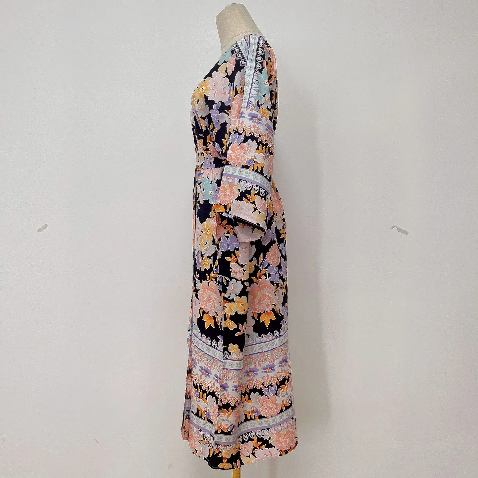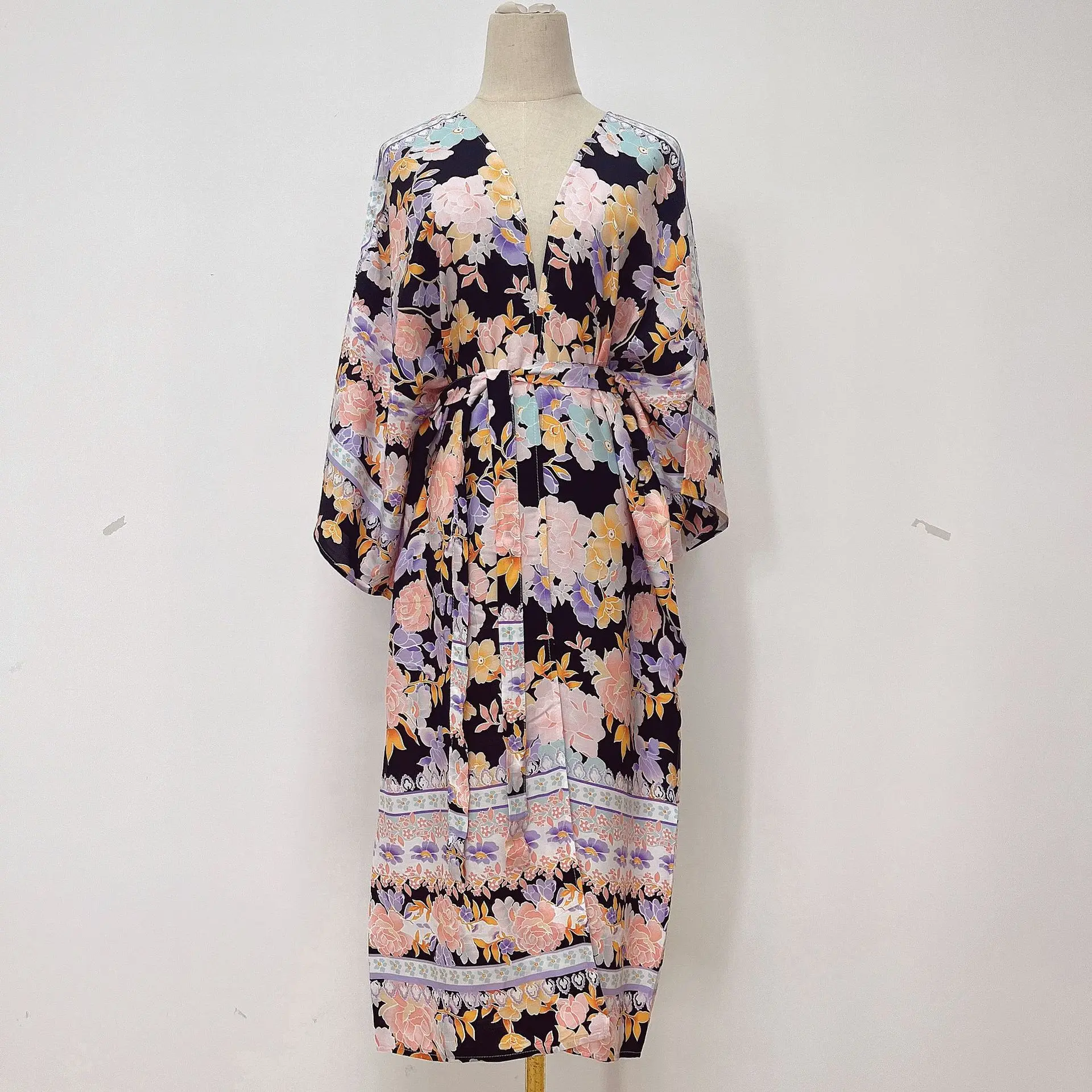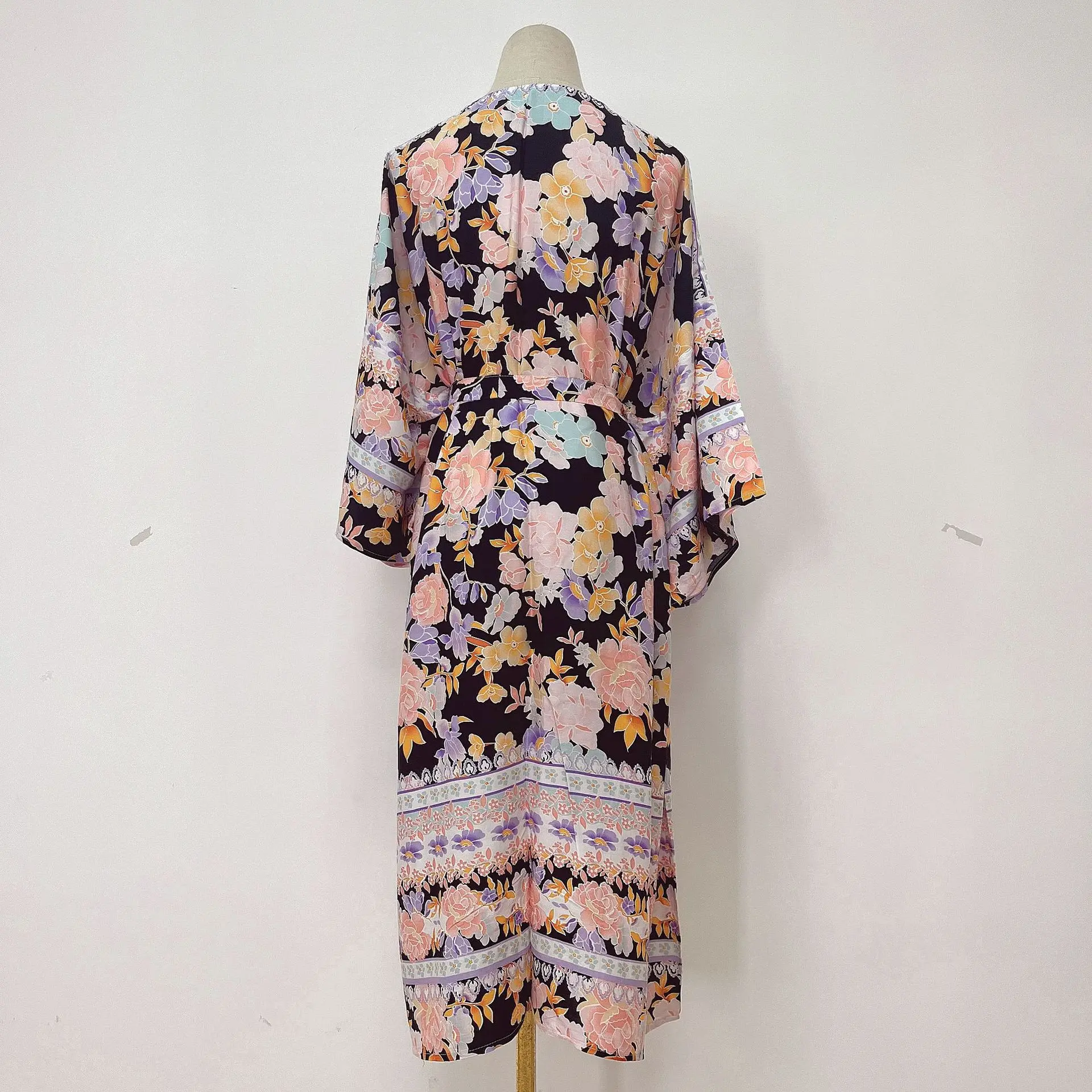 - Robe kimono longue à manches longues à Motif Imprimé floral bohème, inspiration vintage