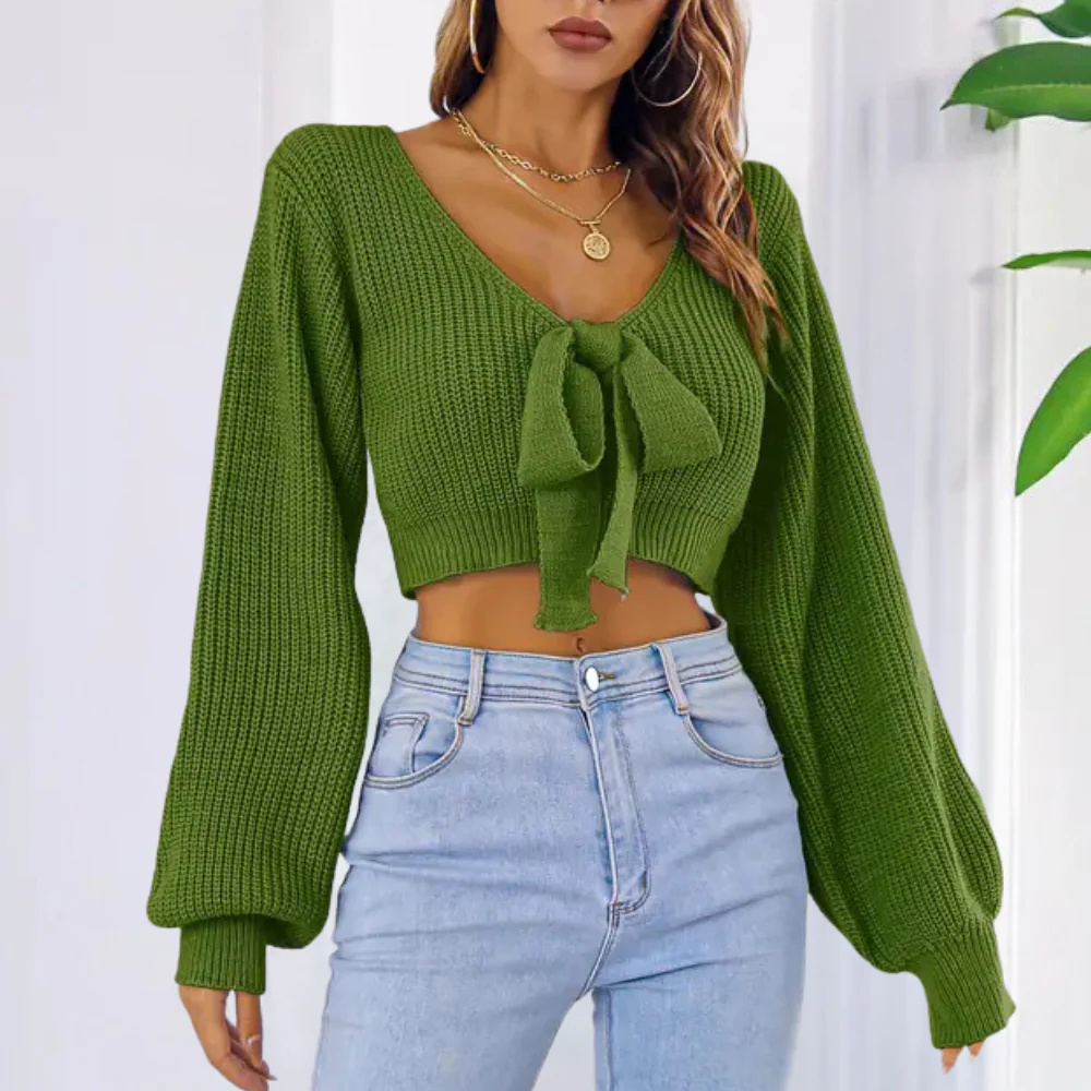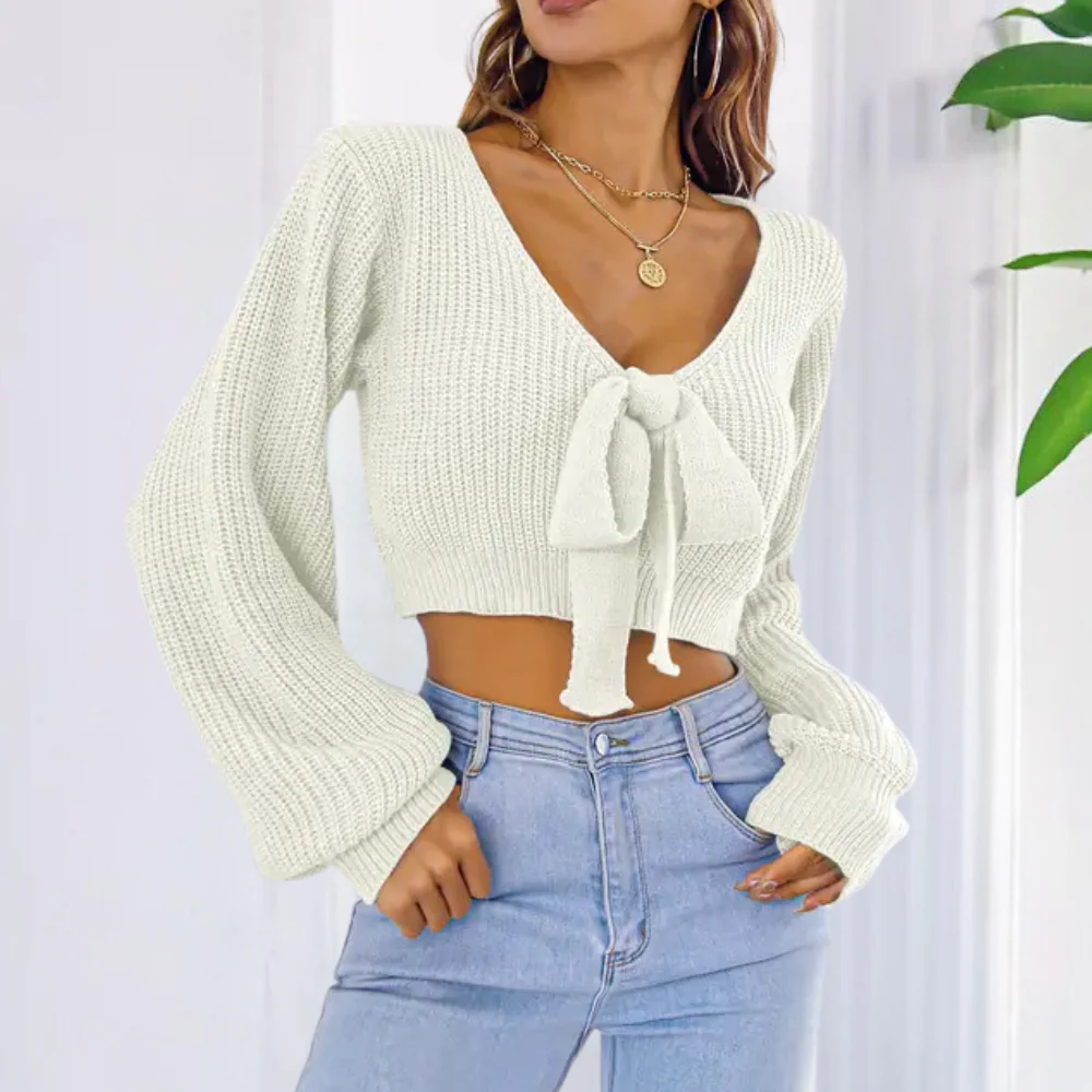 Knot Front Short Sweater | Cotton | Feminine, Elegant and Comfortable
