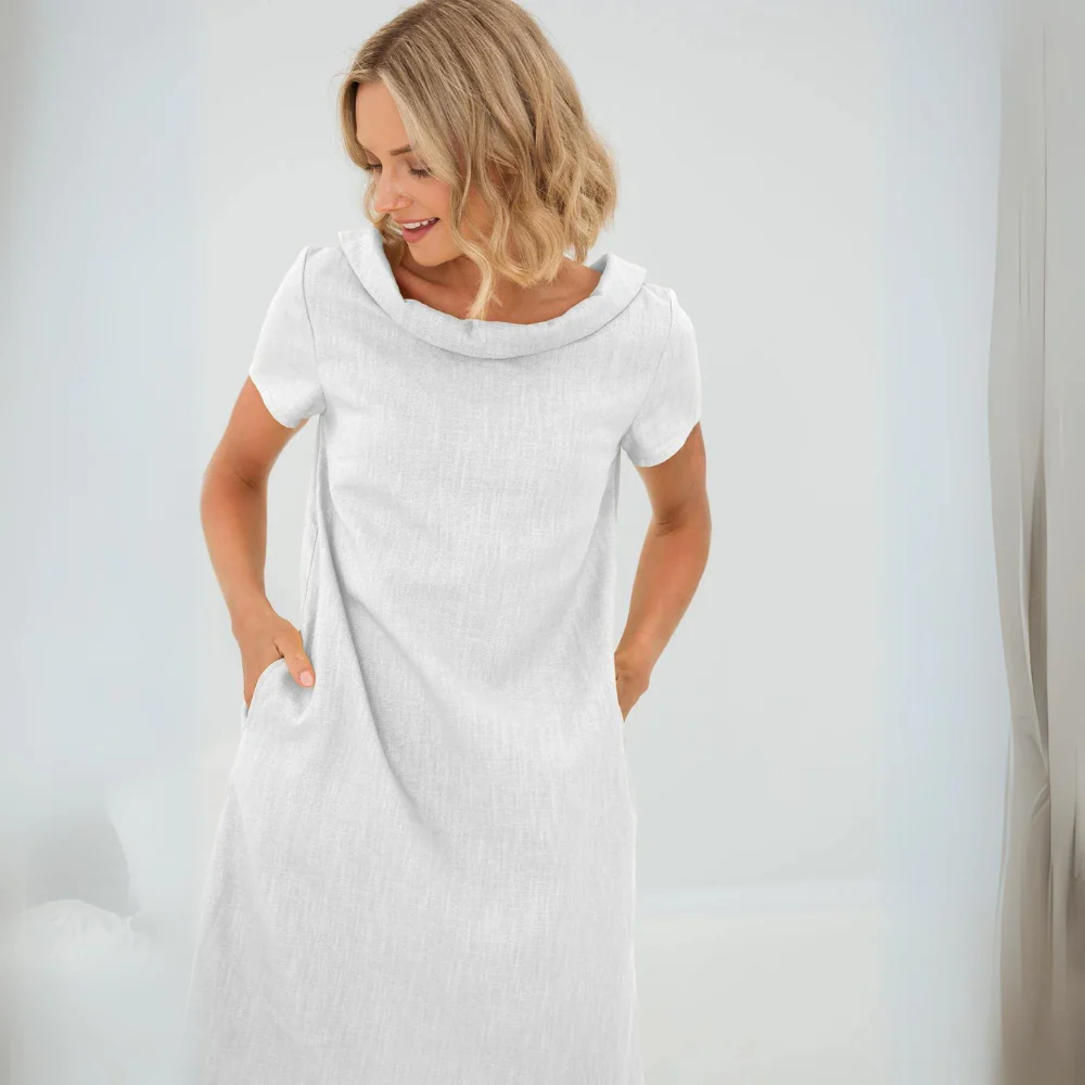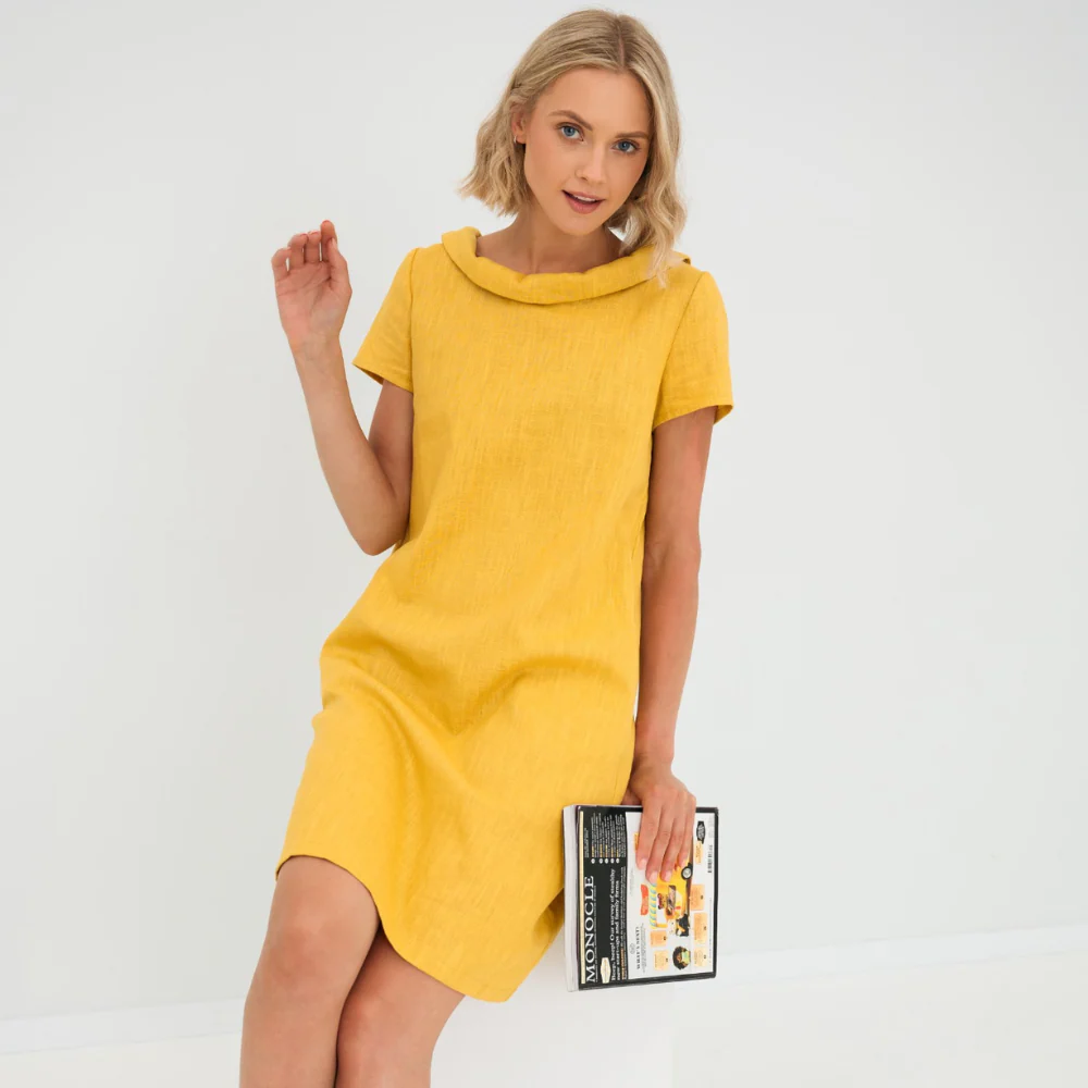 This yellow linen dress brightens up your outfit while offering a comfortable, relaxed fit.