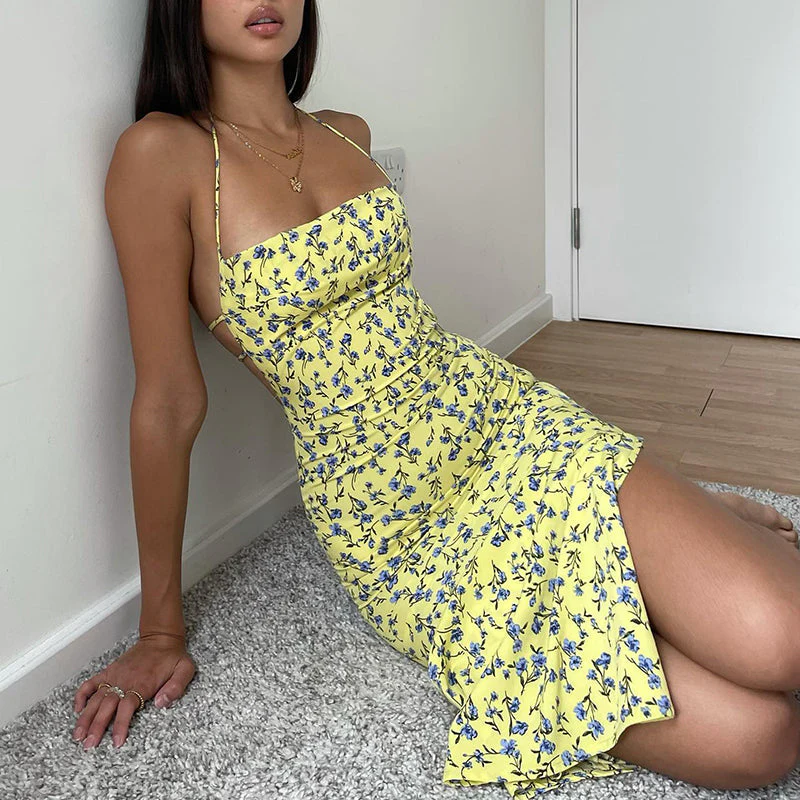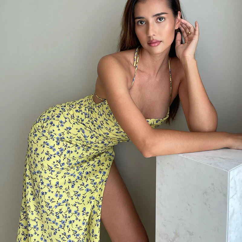 Long Halter Dress | Floral Elegance and Summer Spirit
