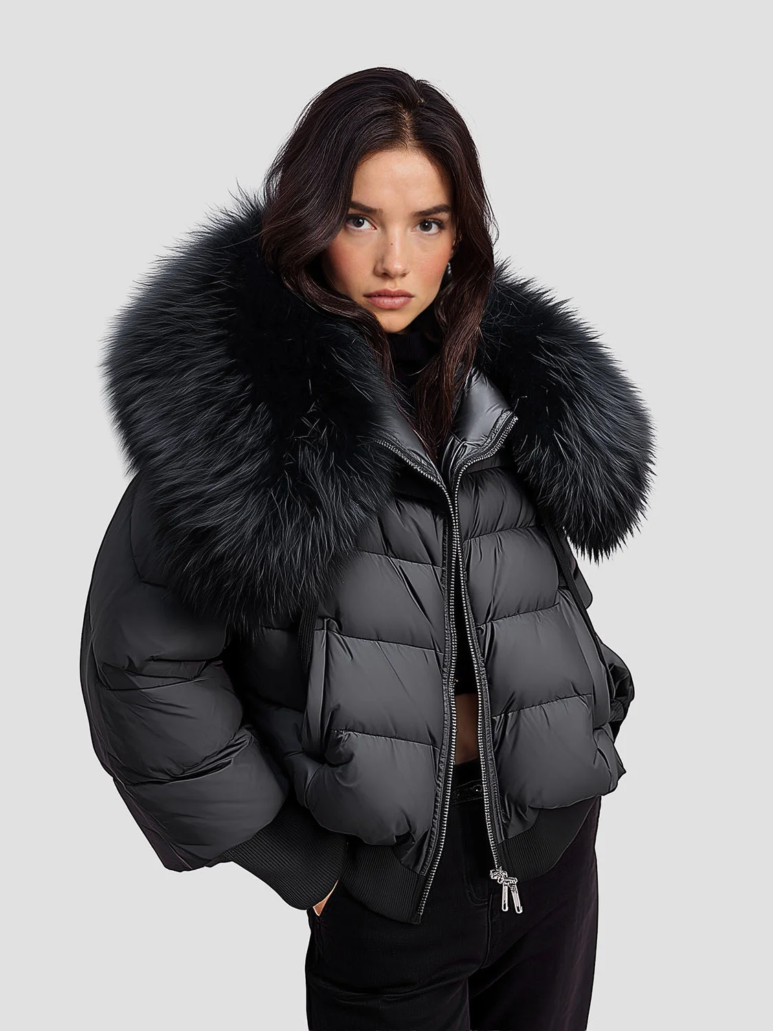 Plongez dans un cocon de douceur avec cette doudoune grosse fourrure femme. Une élégante étreinte chaleureuse offerte par son grand col en fourrure style raton laveur. Détachable selon vos envies, c’est une pièce polymorphe qui vous offre le luxe de transformer votre allure.