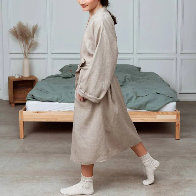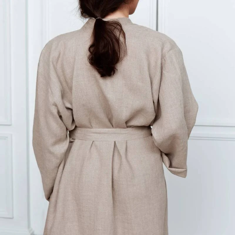 Ce peignoir kimono a une coupe élégante et décontractée, avec des manches longues et une ceinture à nouer pour un ajustement parfait.