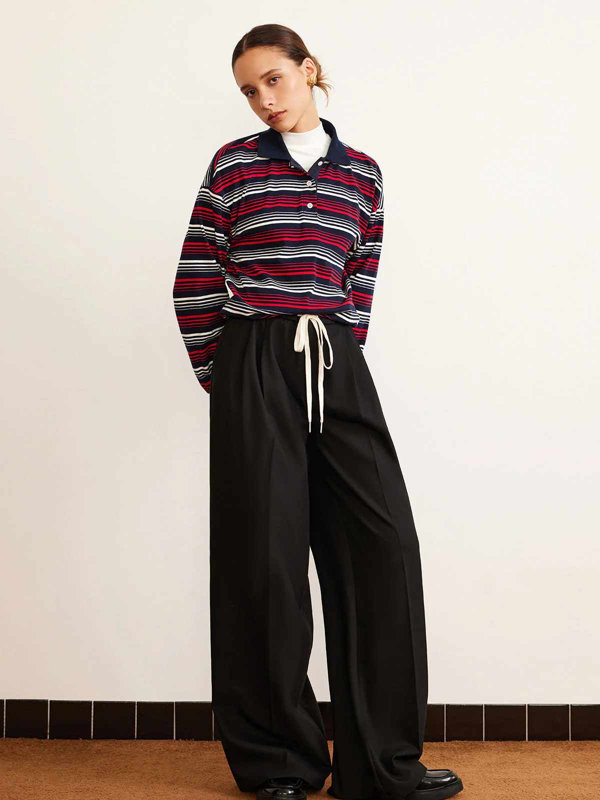 – Details: Horizontal striped pattern, retro style inspired by rugby polo shirts