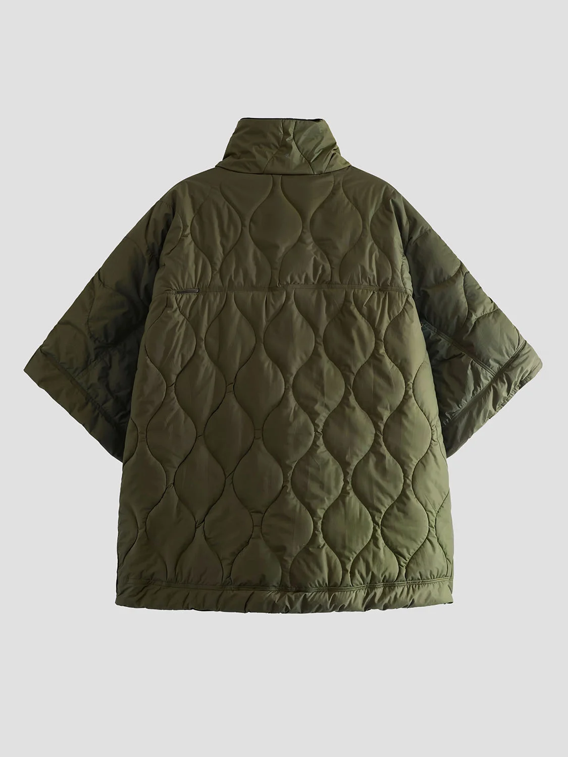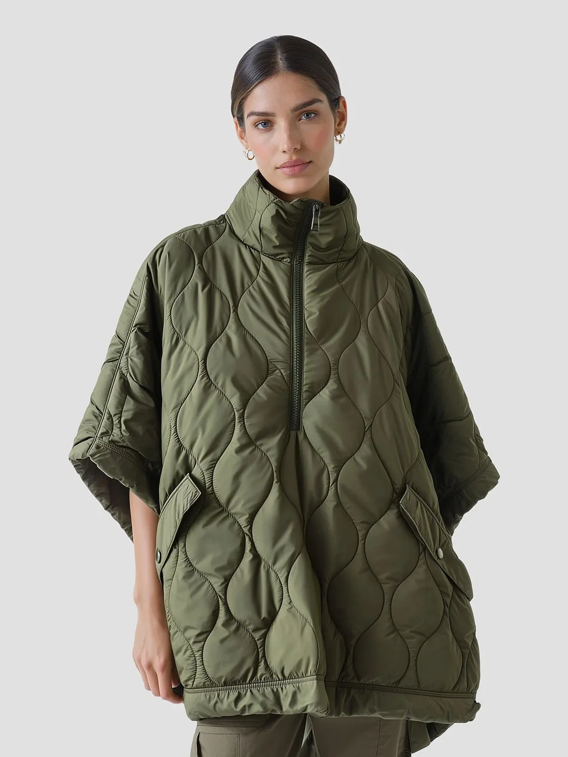Conçue pour être portée en mi-saison comme en hiver, cette doudoune poncho vous gardera bien au chaud grâce à son tissu imperméable.