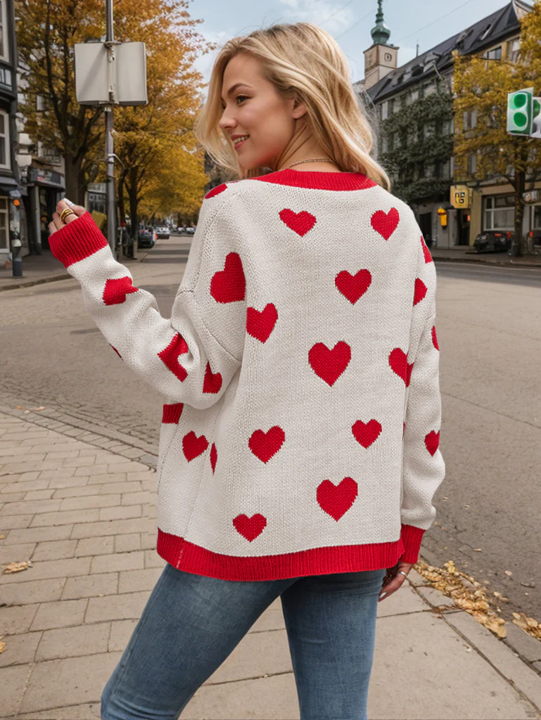 Add a playful, romantic touch to your outfits with this cardigan adorned with contrasting hearts.