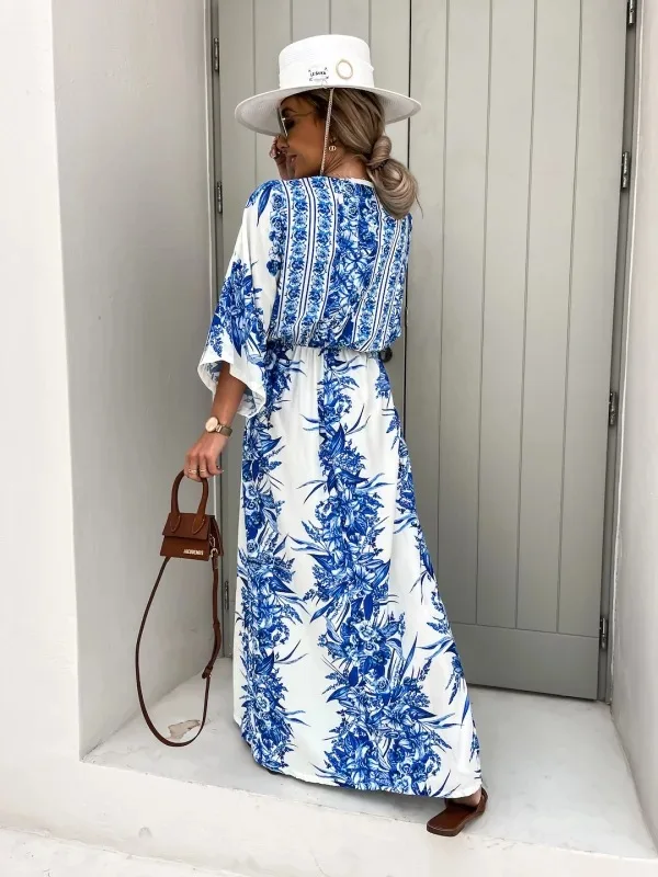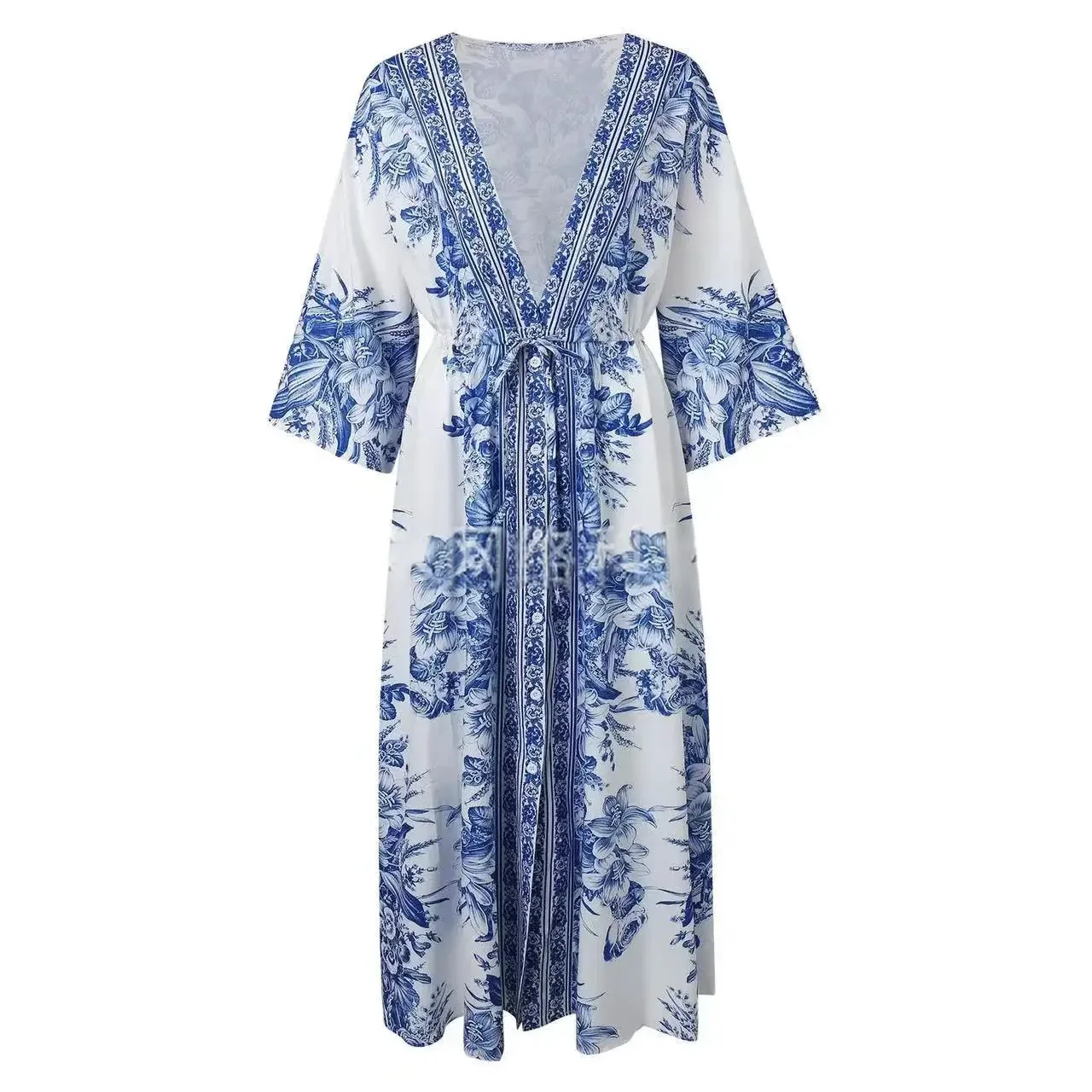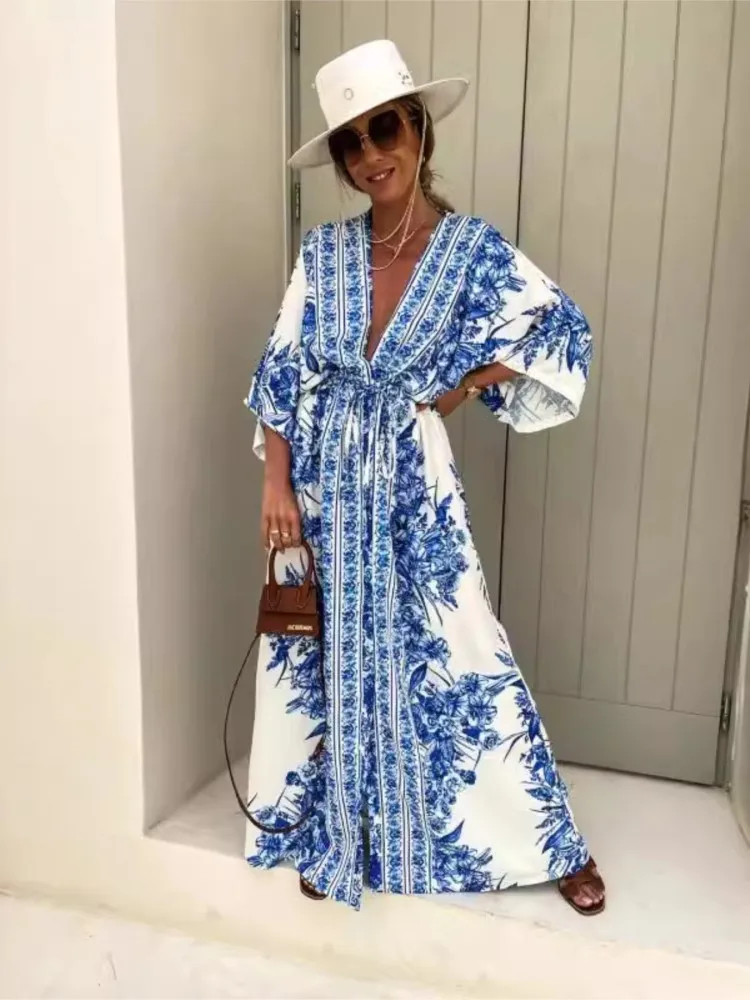Rayonnez tout l’été avec la Robe Kimono Bleue Longue