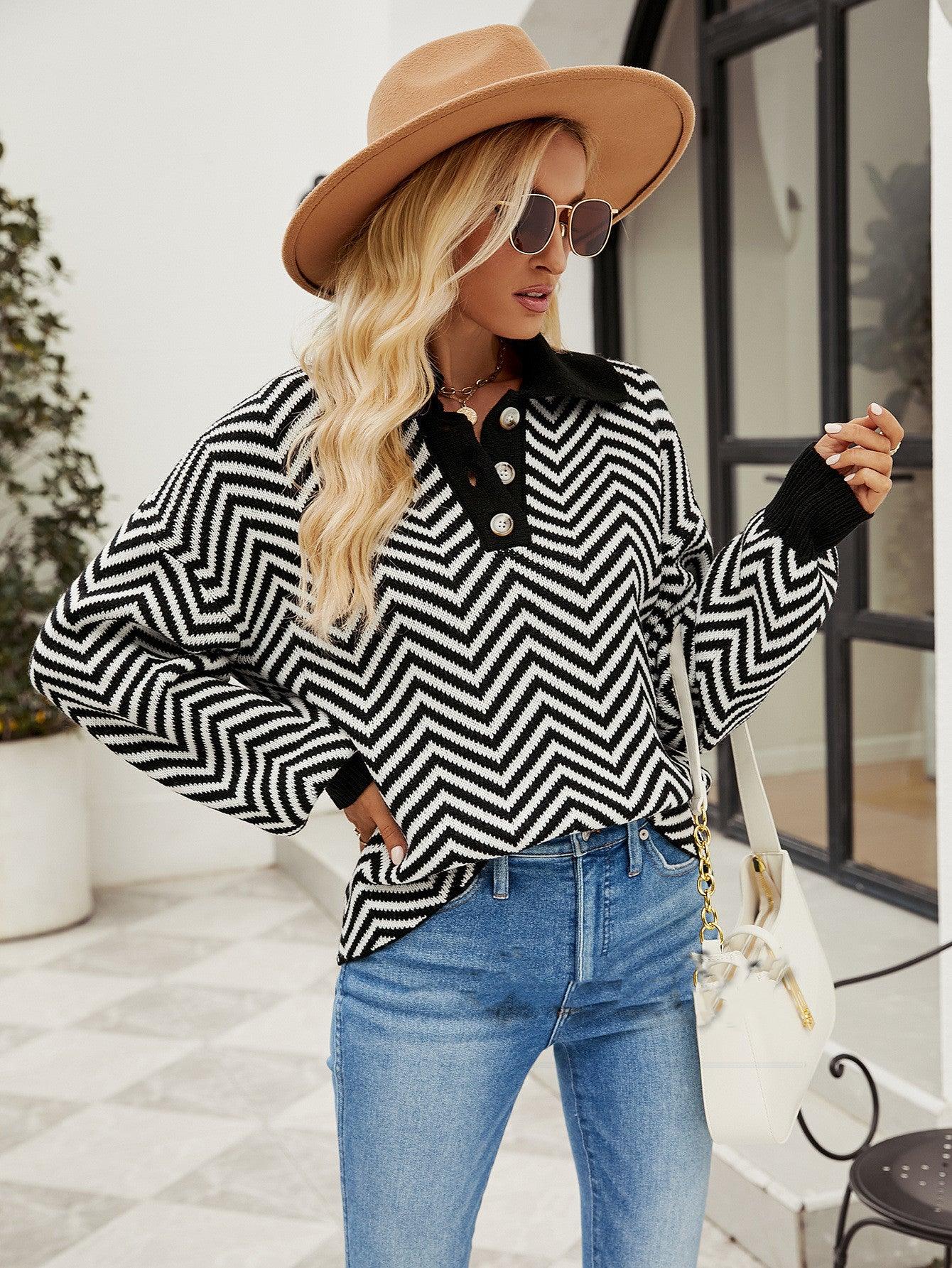 Ce pull polo à motif chevron allie confort et originalité avec son col contrasté et ses boutons élégants. Sa coupe légèrement oversize assure une silhouette décontractée, parfaite pour un style bohème et moderne.