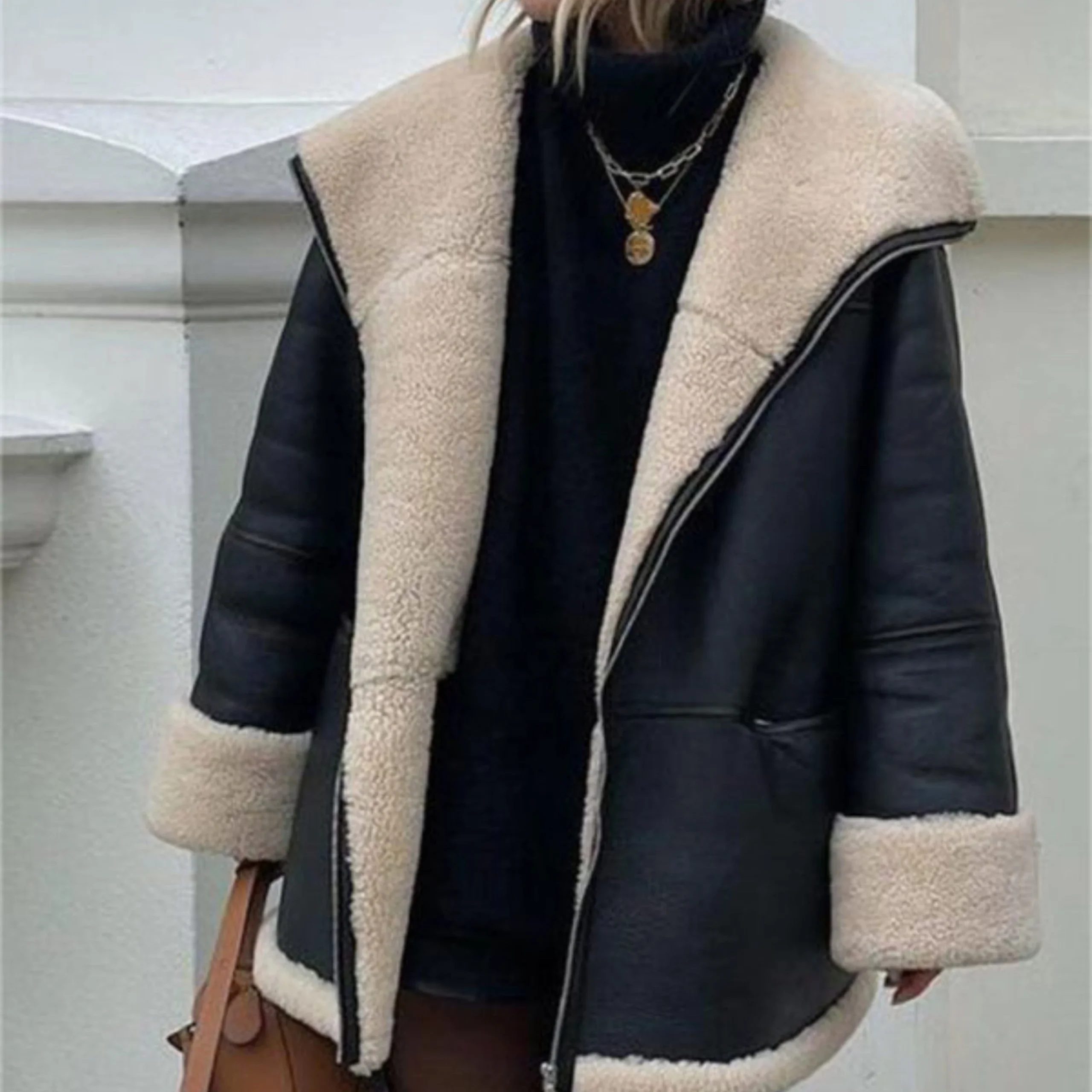 Looking for an ultra-warm, stylish winter jacket to face the cold with confidence?This sherpa-lined jacket offers the perfect balance between extreme warmth and modern allure.With its loose fit, oversized lapels and leather-effect fabric, it’s sure to become the star piece of your winter wardrobe. Features– Material: 100% polyester– Design: Smooth leather-effect exterior, soft, contrasting sherpa […]