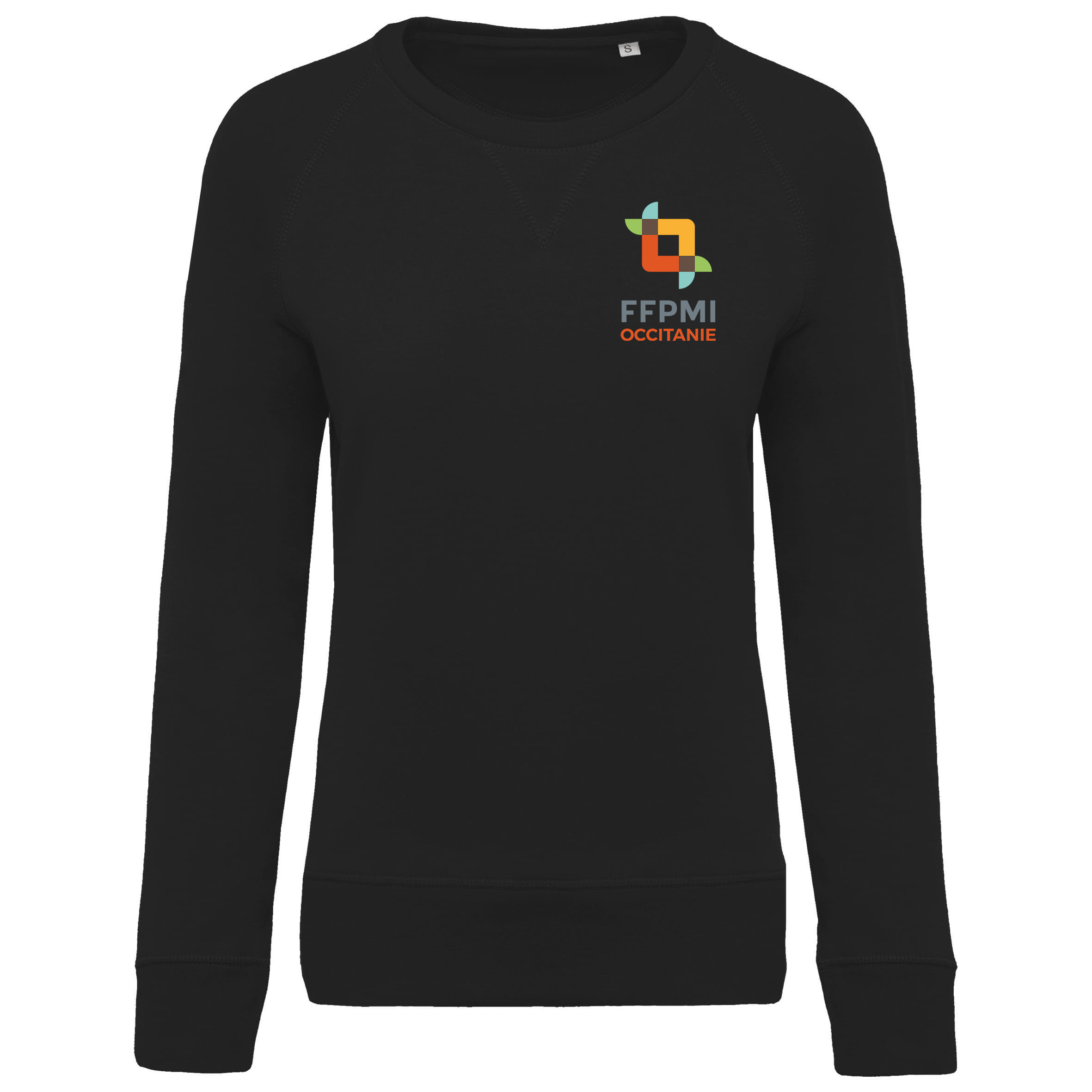 Coupe mode. Bord-côte col, bas de manches et de vêtement. Bande de propreté chevron intérieur col et application en V à l’encolure. Pas d’étiquette de marque au col, uniquement une puce de taille pour faciliter la personnalisation.