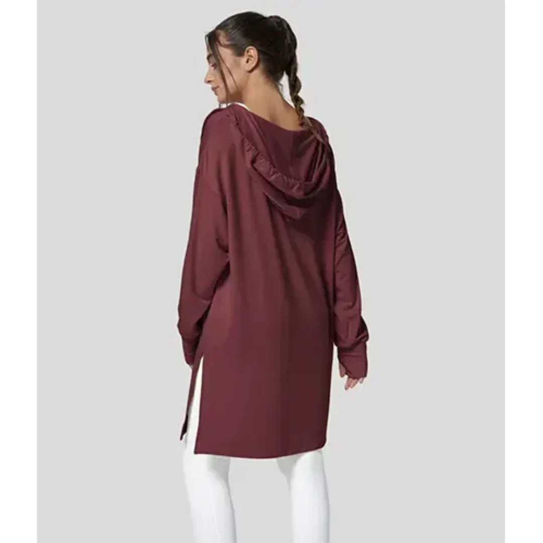 Ce sweat tunique oversize est idéal pour un style décontracté sans compromis sur l’élégance. Son tissu doux et fluide offre un confort absolu, tandis que sa coupe ample avec fentes latérales assure une liberté de mouvement optimale. Parfait pour les journées cocooning ou les sorties décontractées.