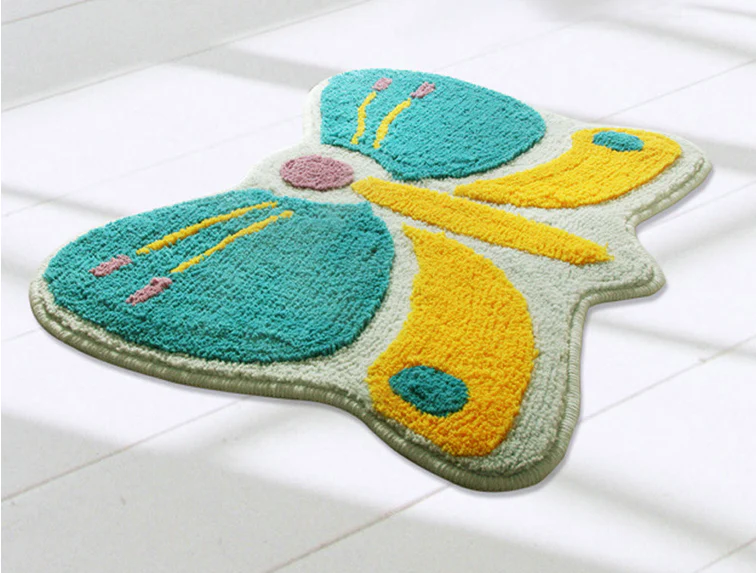 Vous adorerez poser vos pieds nus sur le Tapis Forme Papillon Bleu qui est très doux et absorbant. Idéal à la sortie de la douche, du bain ou du lit.